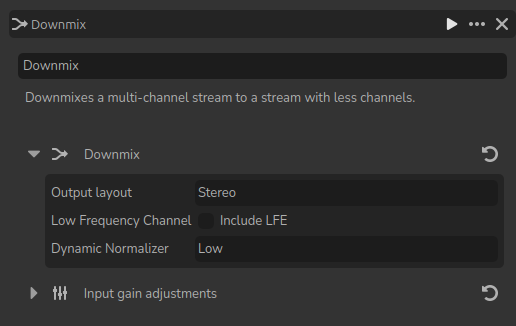 - Downmix Downmix a multi-channel stream to a stream with less channels.