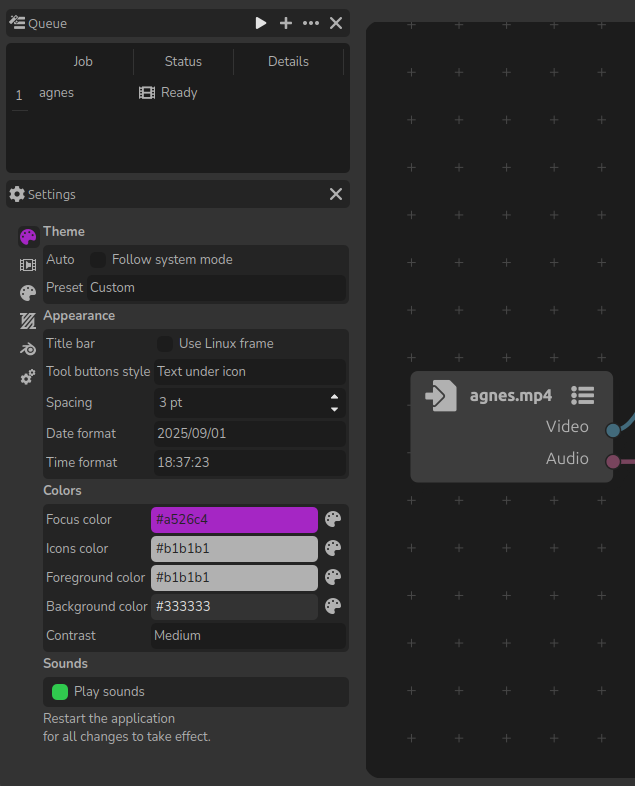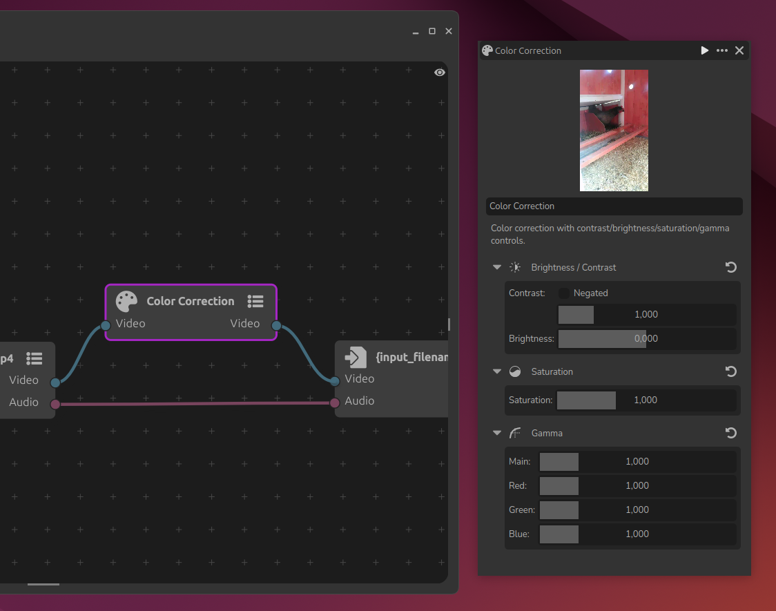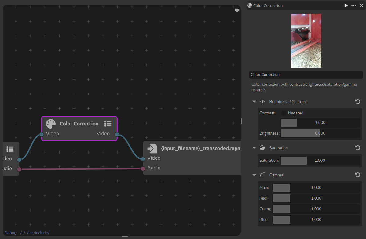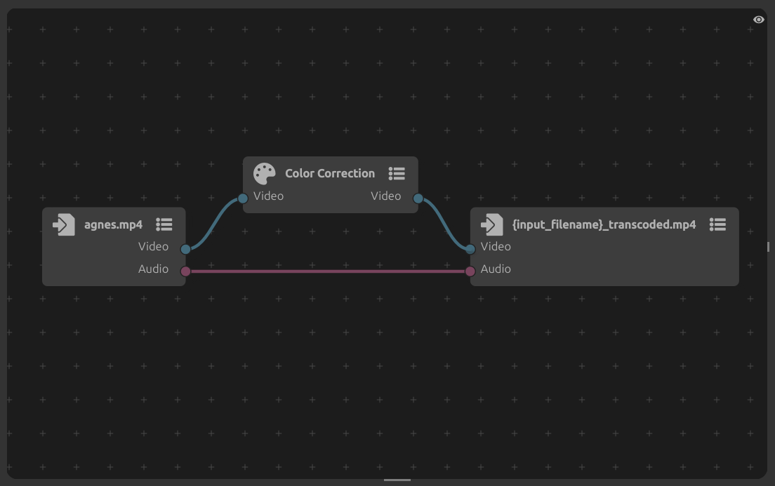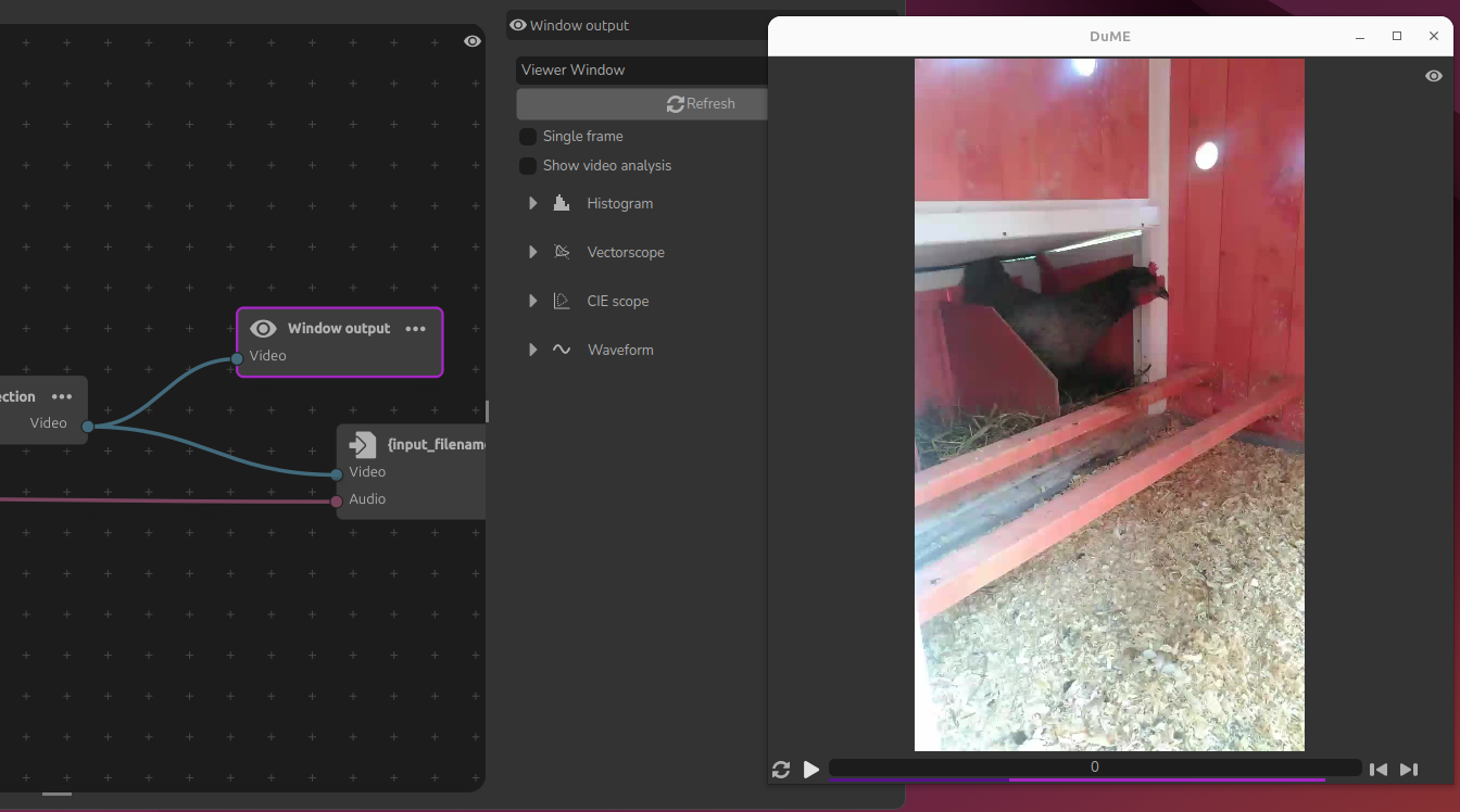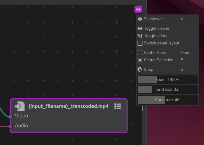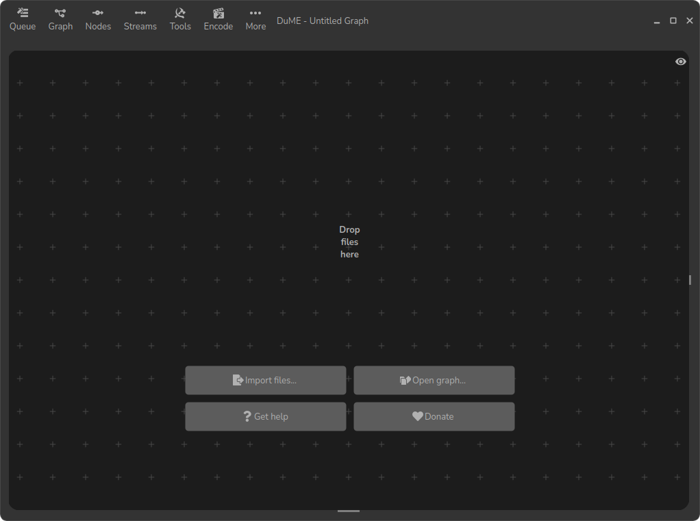 The node editor is the heart of DuME. This is where you can build complex (or simple) graphs to edit and encode your mediae.