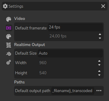 Default parameters for the video player can be set in the settings of the application, in the Multimedia tab.