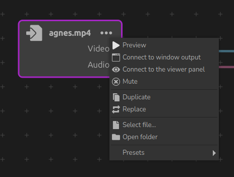 For now, DuME uses FFplay as a video player, which is very light and fast, and can play your graph stream in realtime without rendering it to a file, although this may change in the future, or the option to change the player may be implemented later.