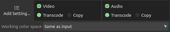 If you know you don’t need any color conversions and color management, you can turn off DuME color management by setting the working color space to None. This will make encoding a bit faster and may make things simpler as DuME will just copy color data without altering anything.